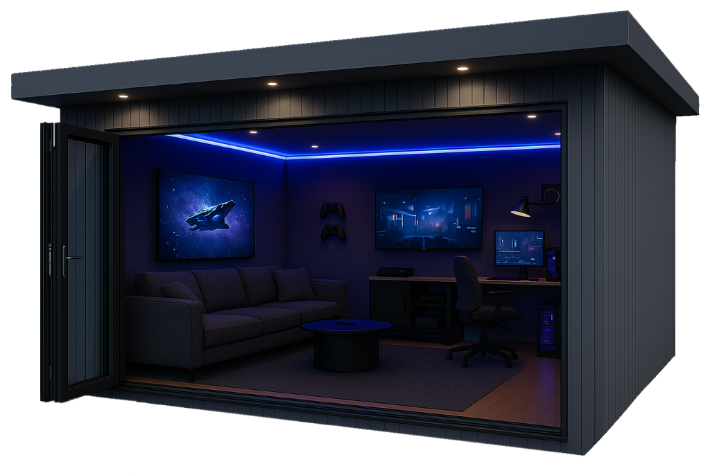 For film buffs and gamers, a garden room can become a dedicated media space. Add blackout blinds, surround sound, and a large screen for the ultimate immersive experience, or set up your gaming rig away from the distractions of the main house.