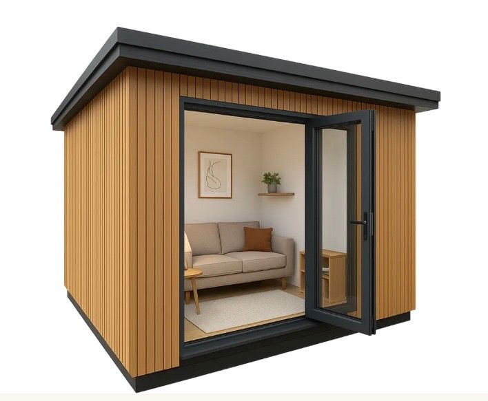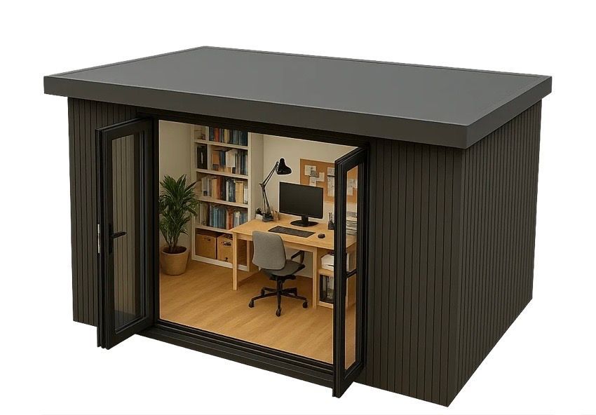Create a quiet, professional home office that is fully insulated and separate from the main house, ideal for focused work, video calls and maintaining a healthy work-life balance.