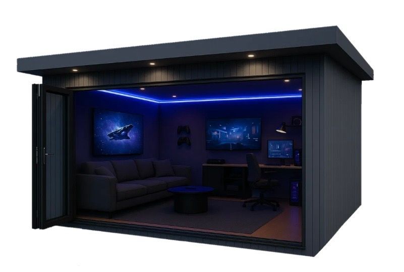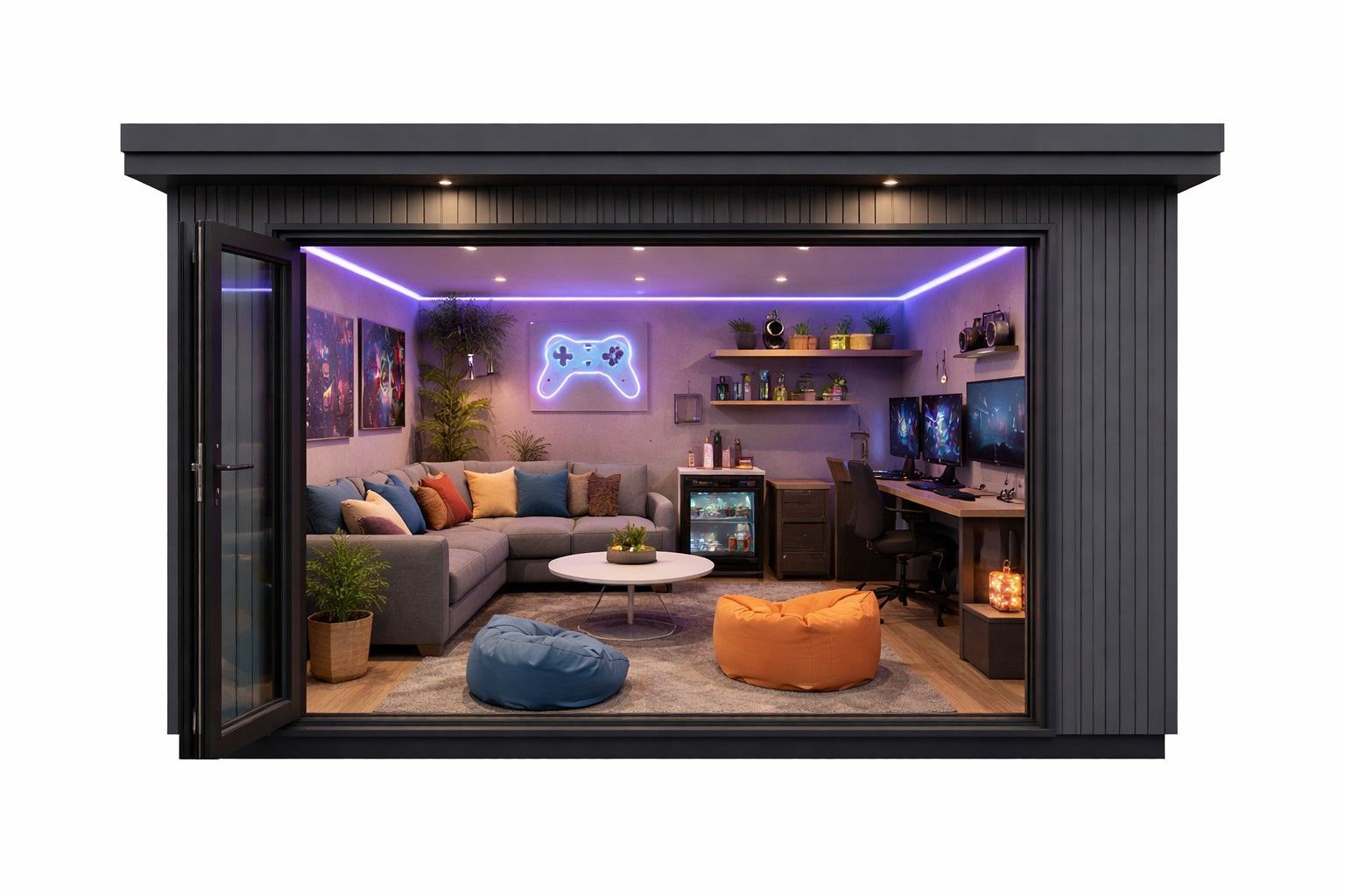 Transform your garden room into a dedicated entertainment space, perfect for film nights, gaming or simply unwinding away from the main house.