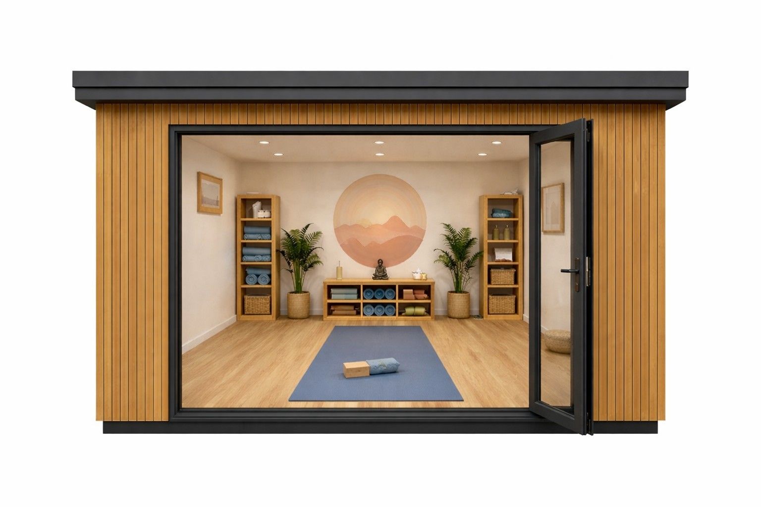 Enjoy a dedicated fitness or wellness space at home. Our garden rooms provide a comfortable, private environment for home gyms, yoga studios or pilates rooms, usable in every season.